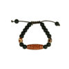 Red nut mala bracelet with red and yellow chalcedony beads.