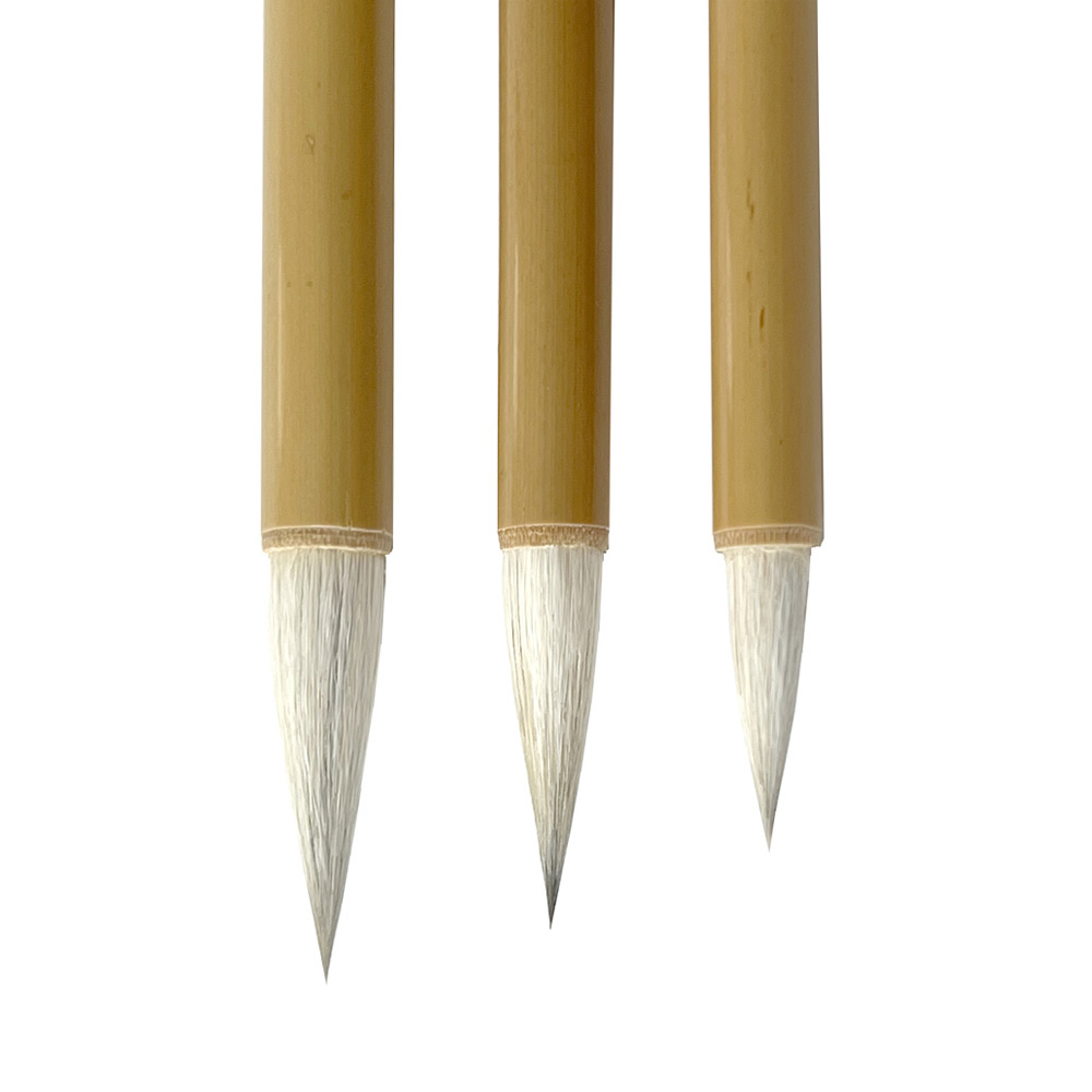 Brushes shafts are bamboo with engraved characters.
